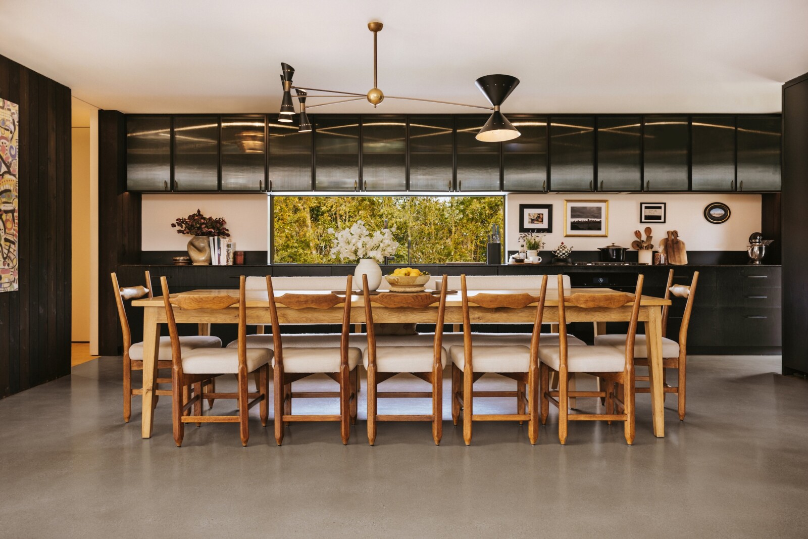 Architecturally, the design embraces a modernist approach with mid-century cues, honoring the home’s original spirit while bringing it forward in time. Hand-troweled plaster, concrete, glass, and wood form a restrained, tactile palette that feels both natural and enduring. Interiors by Vanessa Alexander echo the project’s grounded warmth, layering organic materials and subtly bohemian elements to create a space that feels collected, lived-in, and effortless.